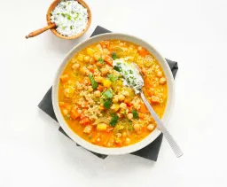 In het bakje soepspecerijen voor 2p zit 1/2 tl gemalen komijnzaad, 1/2 tl gemalen korianderzaad, 1/2 tl harissakruiden en 1/2 tl karwijzaad. In het bakje voor 4p zit de dubbele hoeveelheid.