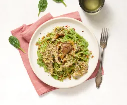 Schep kort voor het serveren 1 tl sojasaus of ketjap door de gehaktballen en bak één minuutje mee.